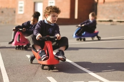 Didicar ist ein einzigartiges Lauflernfahrzeug ohne Pedale, das sich allein durch Drehen des Lenkers nach links und rechts in Bewegung setzt. Es erfordert keine aufwendige Wartung oder Schmierung und bietet eine sanfte, sichere Fahrt auf ebenen, festen Oberflächen wie Böden, Beton oder Asphalt. Ideal für den Einsatz zu Hause und in Kindereinrichtungen.