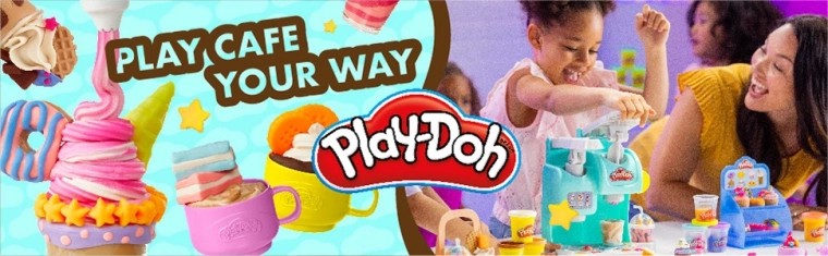 Das Set Play-Doh Bunte Kaffeebar verwandelt das Kinderzimmer in ein kleines Café voller Fantasie. Kinder können „Kaffees“, Tees, Frappés oder Shakes aus Knete zubereiten, mit Schlagsahne dekorieren und auf einem transparenten Ständer servieren. Dank des umfangreichen Zubehörs und der Formen für Kekse, Muffins und Donuts ist der Spaß immer wieder garantiert.