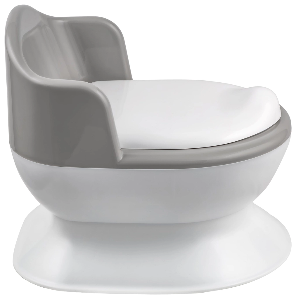 Eltern schätzen die stabile Konstruktion mit breiter Basis und rutschfesten Füßen, die die Sicherheit erhöht. Die ergonomische Rückenlehne und die seitlichen Griffe sorgen für bequemes Sitzen und einfaches Aufstehen. Der praktische Stauraum für Feuchttücher oder Toilettenpapier hält alles Nötige stets in Reichweite.