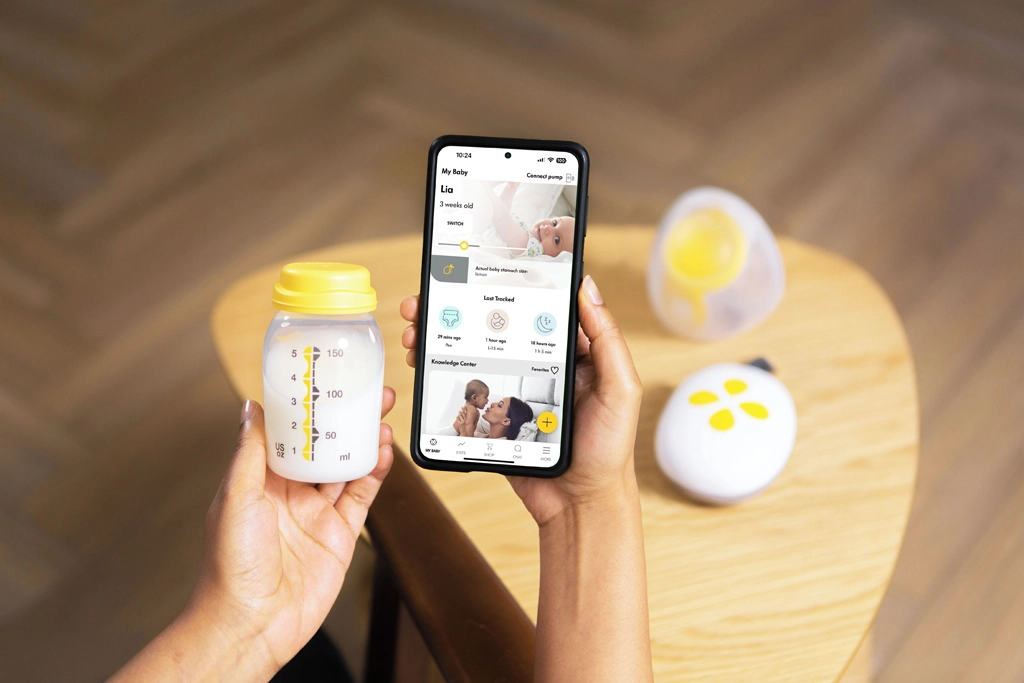 Die Steuereinheit ist kompakt und leicht mit einer intuitiven Oberfläche – es genügen 4 Tasten. Das gesamte System besteht aus nur 3 leicht zu reinigenden Teilen, die auch spülmaschinengeeignet sind. Das transparente Design erleichtert das korrekte Positionieren der Brustwarze und die Kontrolle des Milchflusses. Mit der Medela Family App erhalten Sie automatisches Echtzeit‑Tracking, personalisierte Tipps und einen Überblick über das Abpumpen, der Ihnen hilft, Ihre Routine zu optimieren.