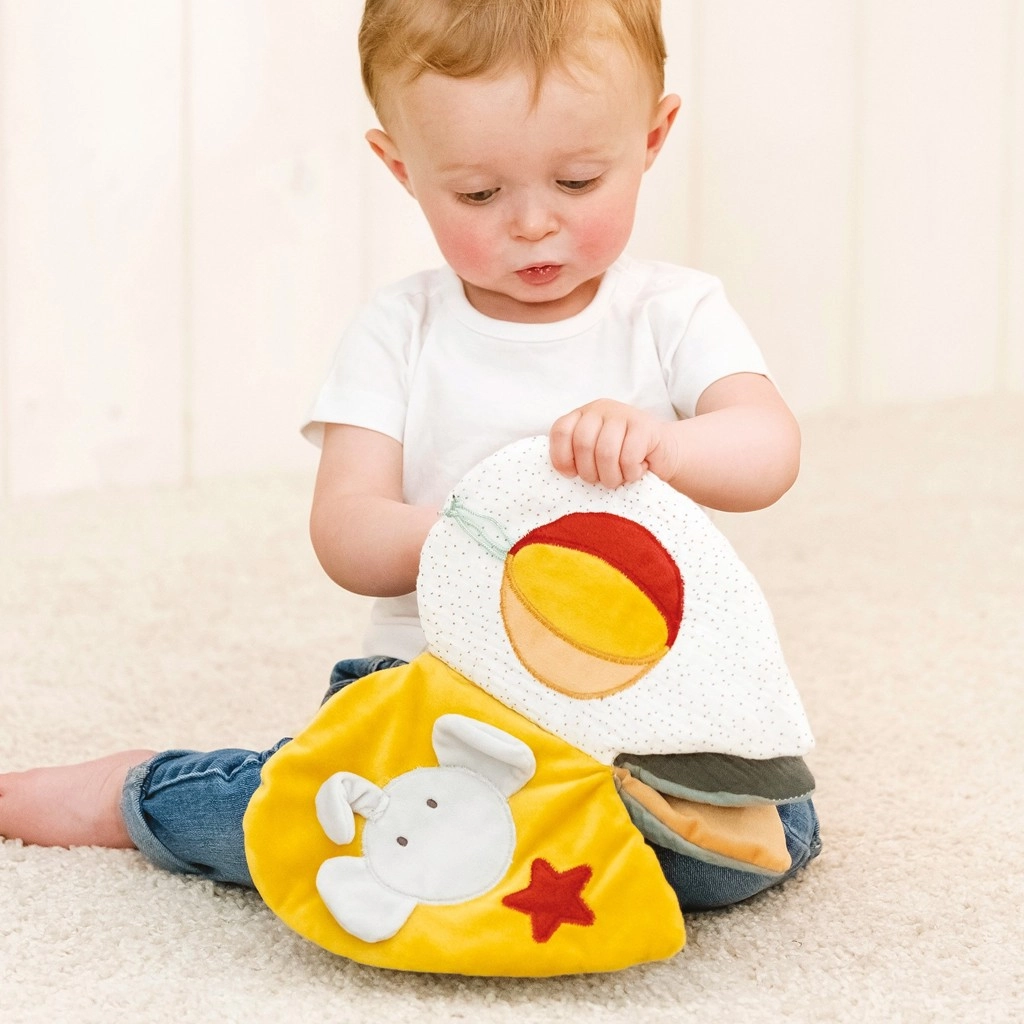 Weiche Stoffe, Reliefs und Bänder bieten reichhaltige taktile Reize und unterstützen die Entwicklung der Sinne sowie die Konzentration.