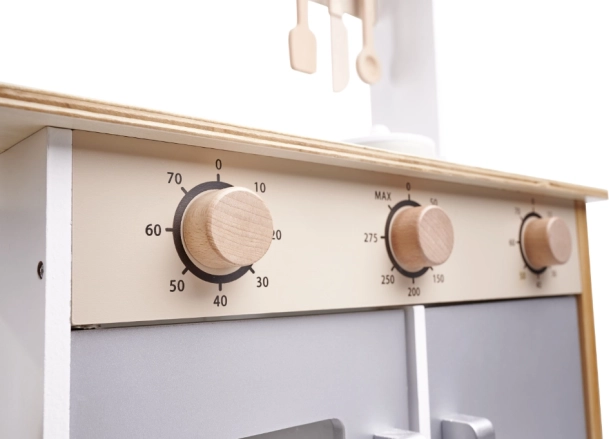 Realistische Steuerung: Die Herdknöpfe sind so konstruiert, dass sie wie echte aussehen und sich leicht drehen lassen, wodurch sichergestellt wird, dass Kinder mühelos damit umgehen können.