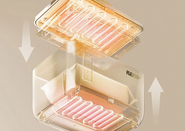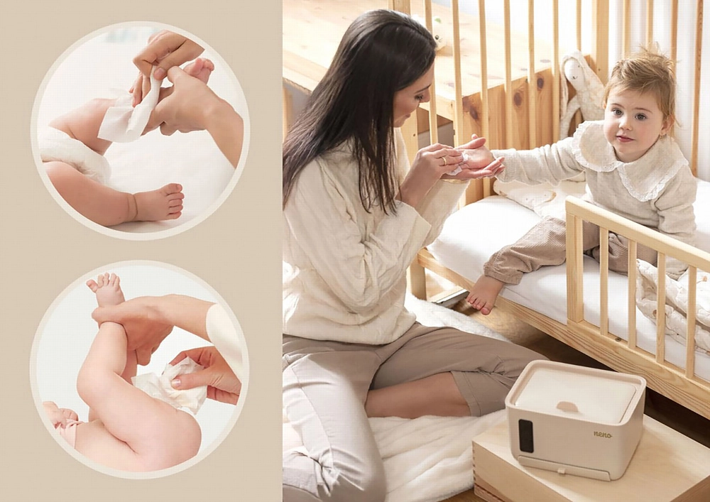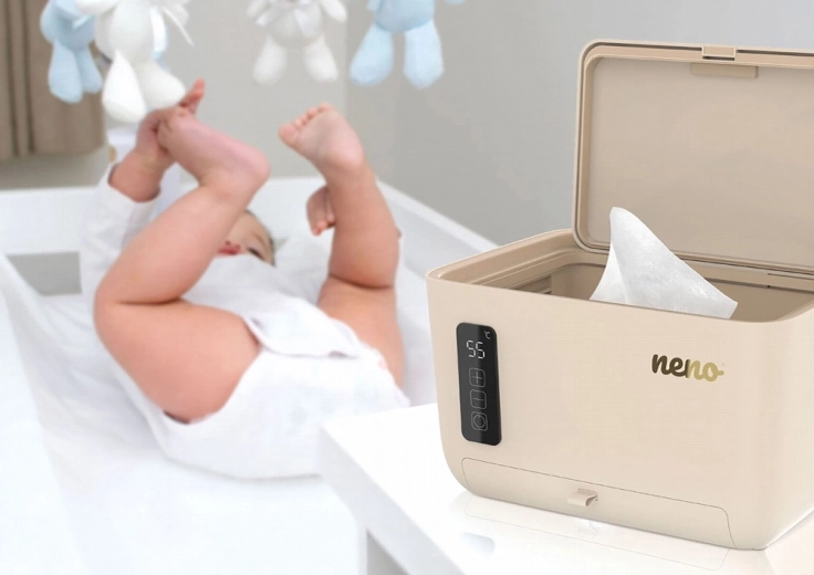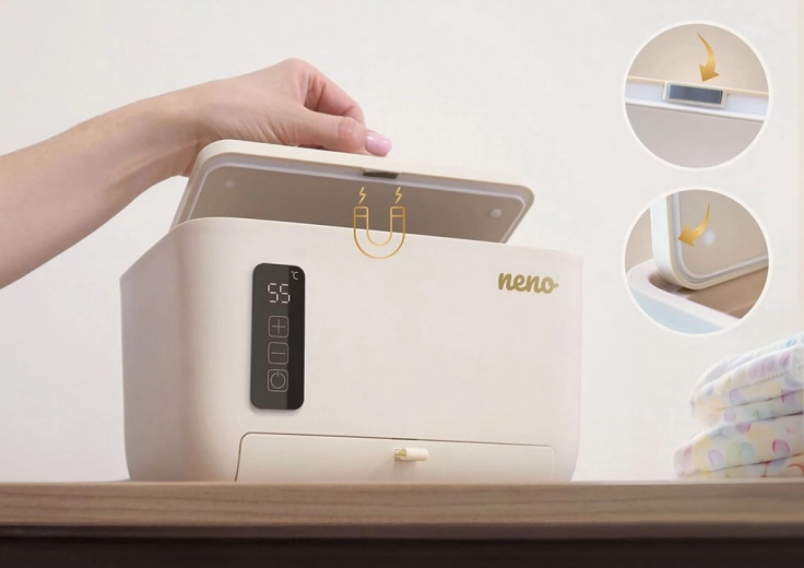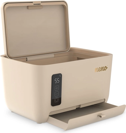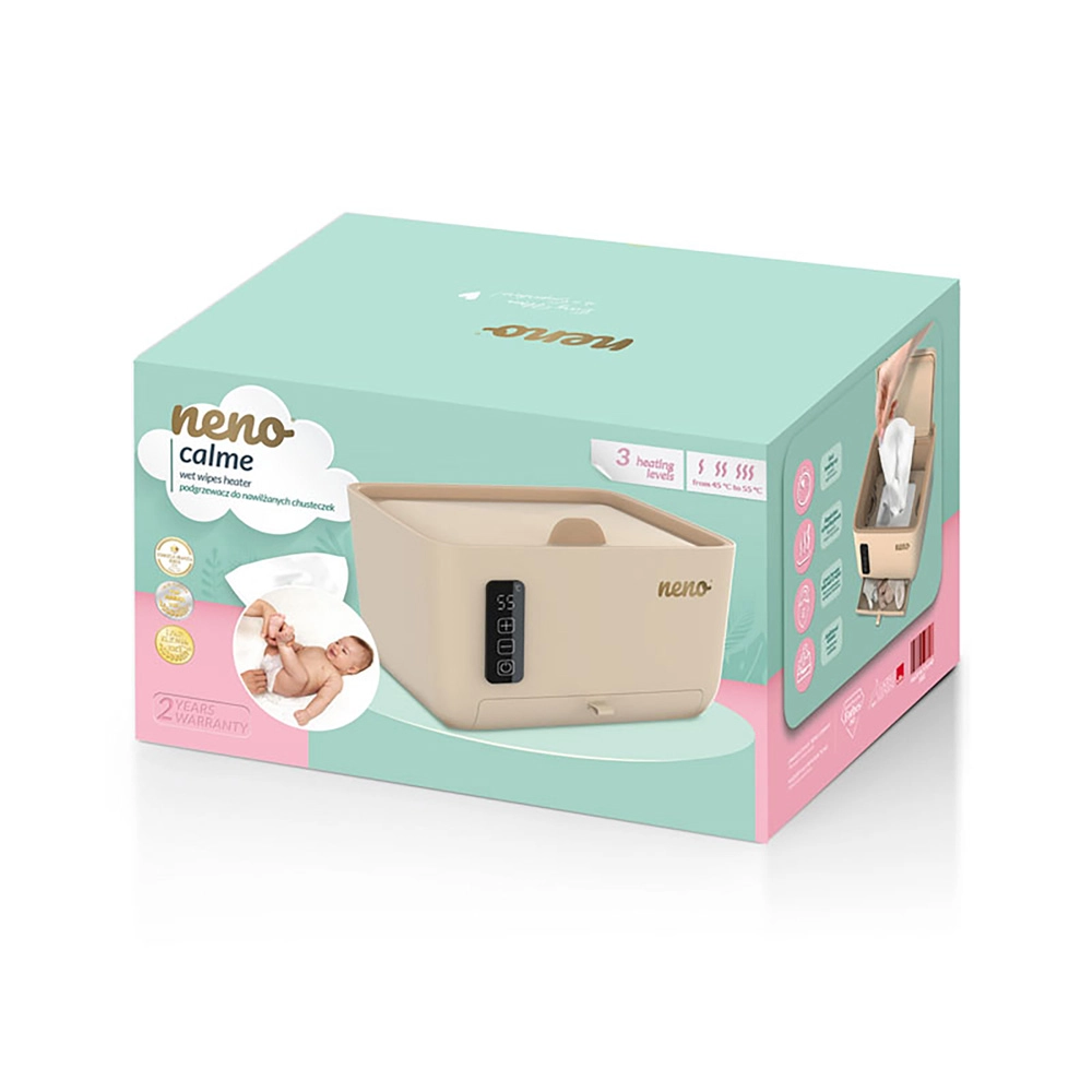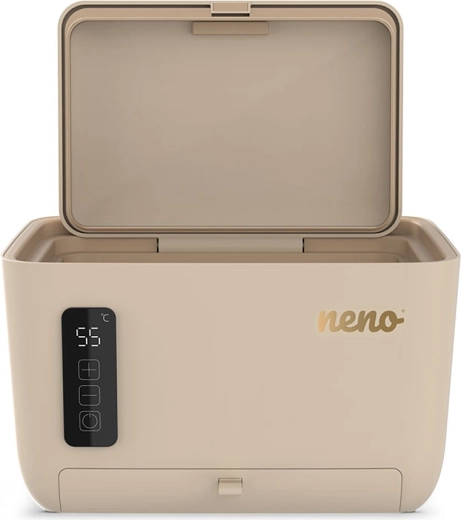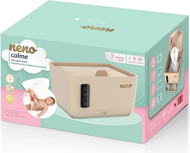 Neno Calme ist ein moderner Wärmer und eine Box für Tücher, die den Komfort bei der Babypflege erhöht. Dank drei Heizstufen (45/50/55 °C) und der beidseitigen Erwärmung von oben und unten erhalten die Tücher eine gleichmäßige, angenehme Temperatur ohne Überhitzungs- oder Austrocknungsrisiko. Der magnetische Deckel mit Dichtung spart Energie und hilft, die Feuchtigkeit im Inneren zu bewahren.