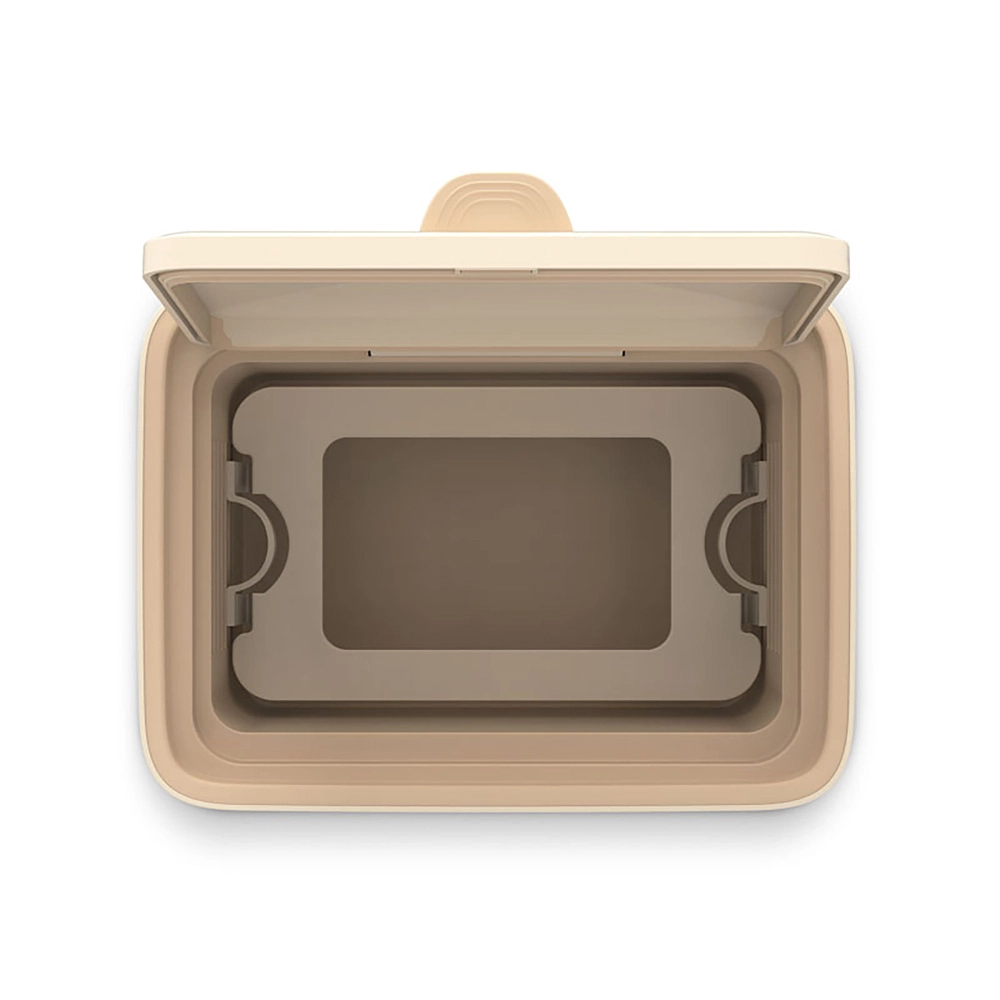 Die beidseitige Erwärmung von oben und unten hält die Tücher gleichmäßig warm und angenehm feucht. Der magnetische Deckel mit Dichtung verhindert Wärmeverluste und senkt den Verbrauch.