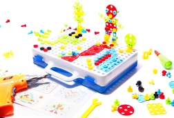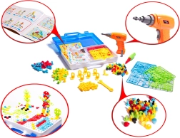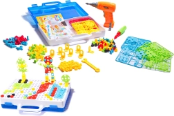 Das Set enthält bunte Schrauben und Teile, die Kinder ansprechen und helfen, ihre motorischen Fähigkeiten zu entwickeln.