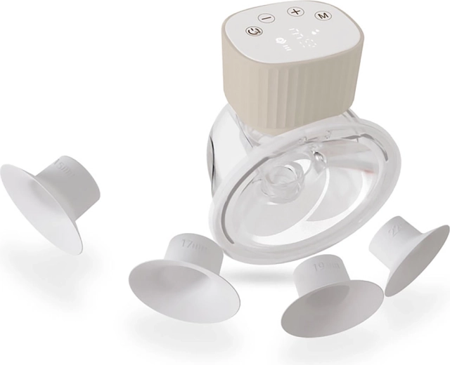 Ultraweiche Silikonaufsätze schützen die empfindliche Haut und helfen zusammen mit vier Einsätzen (15/17/19/22 mm), einen perfekten Sitz ohne Druckstellen zu finden. Das geschlossene hygienische System verhindert Rückfluss und Kontamination, während der leise Betrieb auch für nächtliches Abpumpen ideal ist, ohne das Baby zu stören. Jede Einheit ist leicht (143 g), hat einen Timer mit Pausenfunktion, einen 150-ml-Behälter mit Skala und lädt schnell über USB‑C.