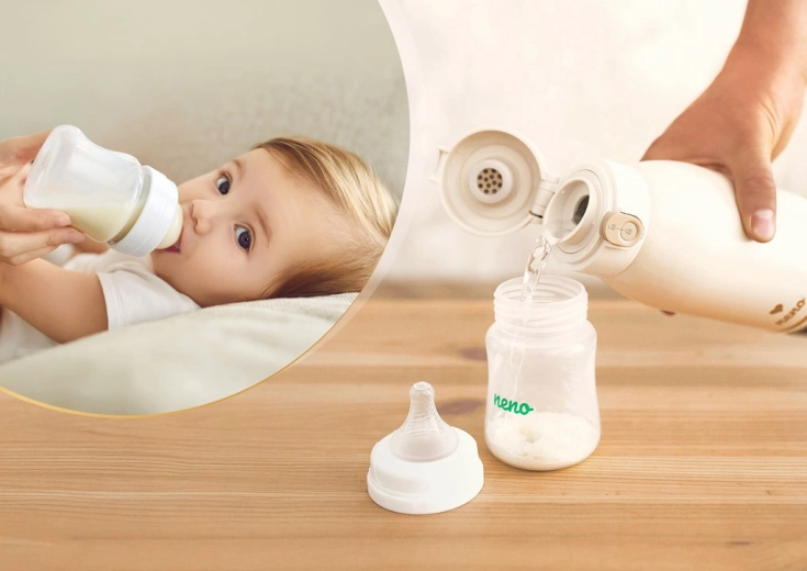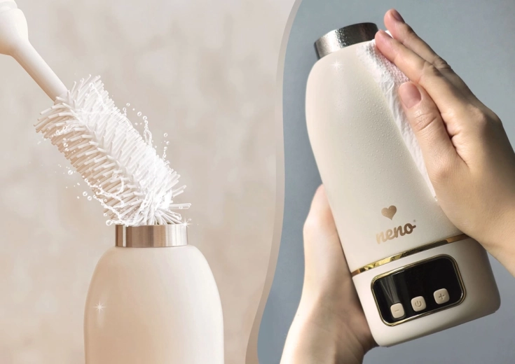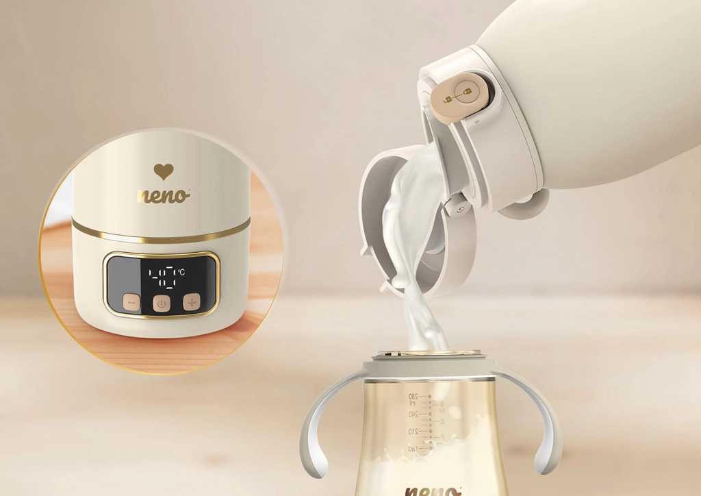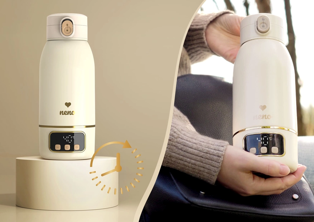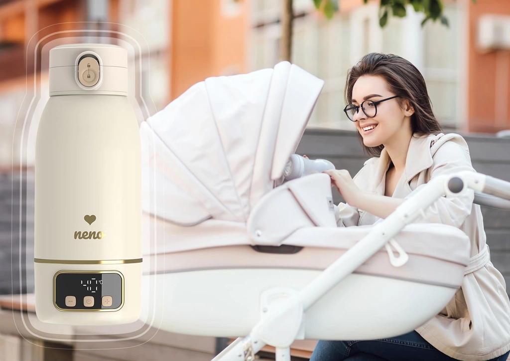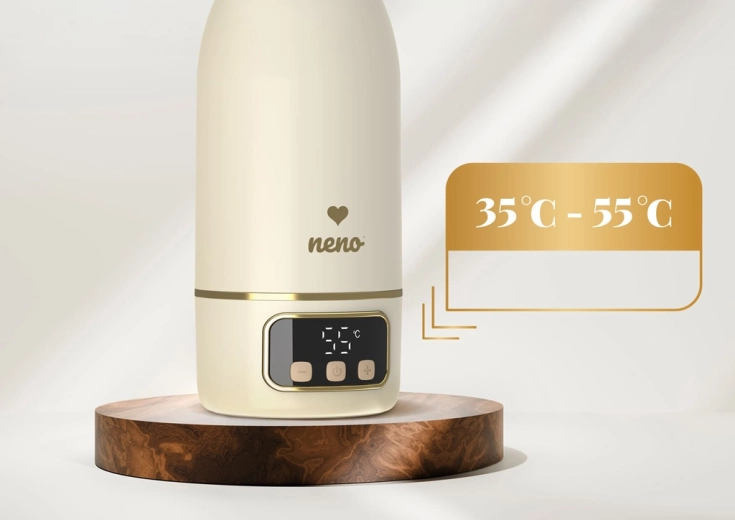 Neno Savia ist ein moderner, kabelloser Erwärmer, der das Füttern jederzeit und überall erleichtert. In nur 3 Minuten erwärmt er 150 ml Wasser auf etwa 40 °C und hält die eingestellte Temperatur zuverlässig im Bereich von 35–55 °C. Dank robuster Konstruktion, dicht schließendem Deckel und einer Sperre gegen unbeabsichtigtes Einschalten eignet er sich für Reisen, das Auto und den täglichen Spaziergang.