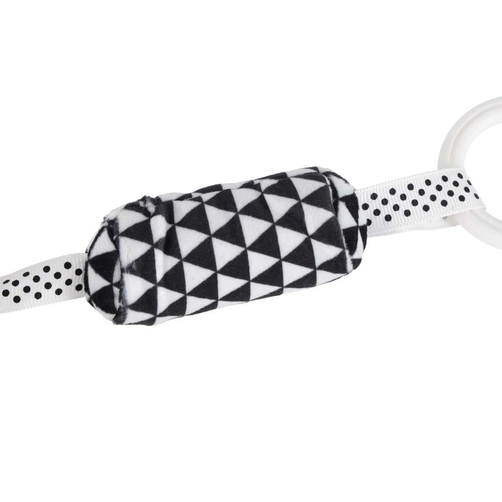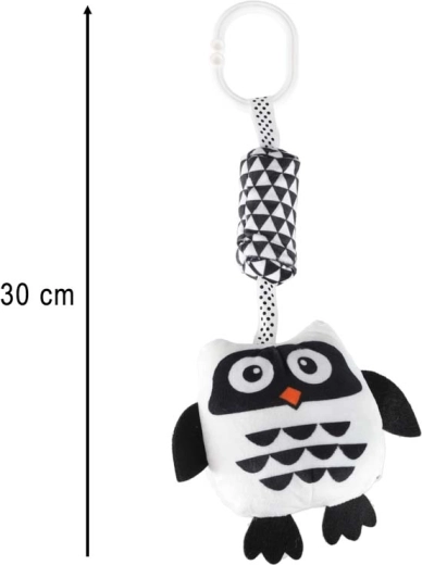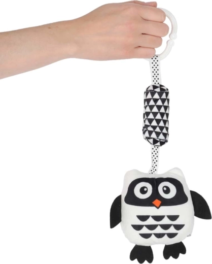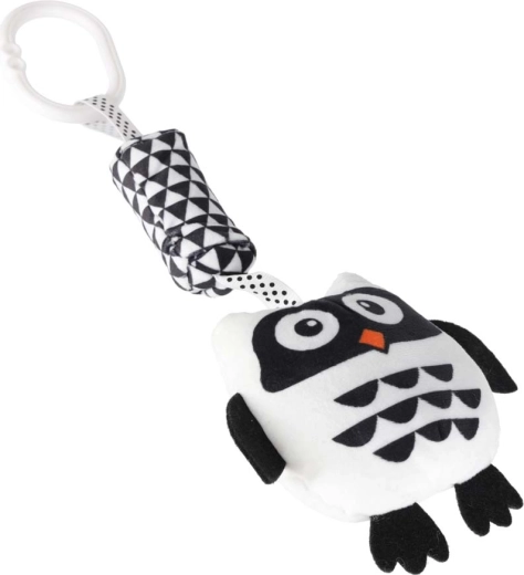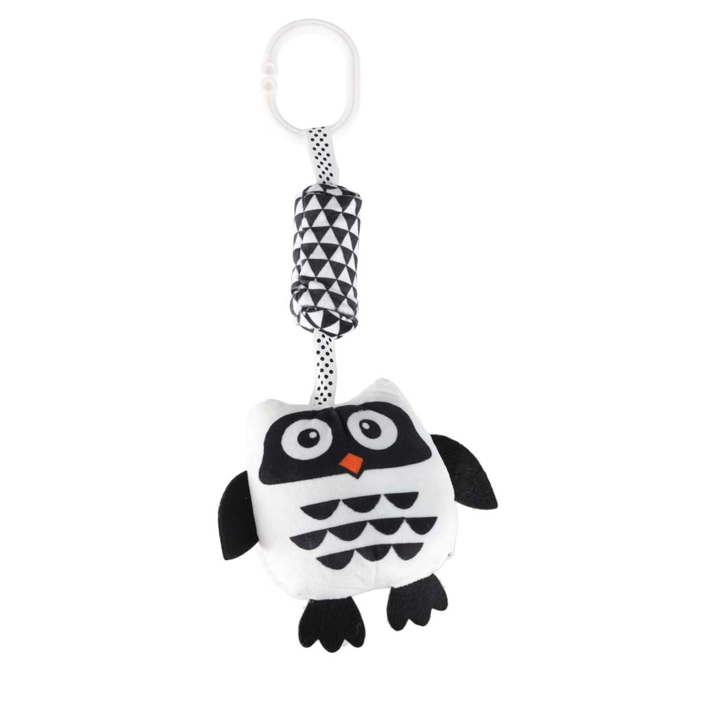 Niedliche hängende Eule in Schwarz‑Weiß für die Kleinsten, fördert die visuelle Stimulation, die Sinnesentwicklung und Spielspaß unterwegs. Dank des praktischen Clips lässt sie sich leicht an Kinderwagen, Autositz und Bettchen befestigen. Weiche Materialien, verschiedene Texturen sowie rasselnde/knisternde Elemente regen zum Greifen und Entdecken an.