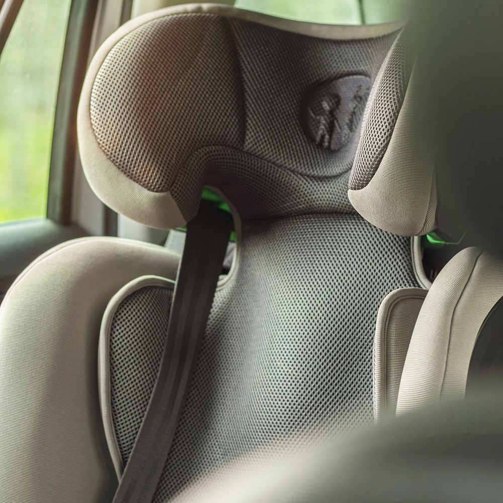 Die Konstruktion mit Seitenaufprallschutz und korrekter Gurtführung erfüllt die moderne i-Size-Norm für maximalen Schutz von Kopf und Oberkörper von 100 bis 150 cm.