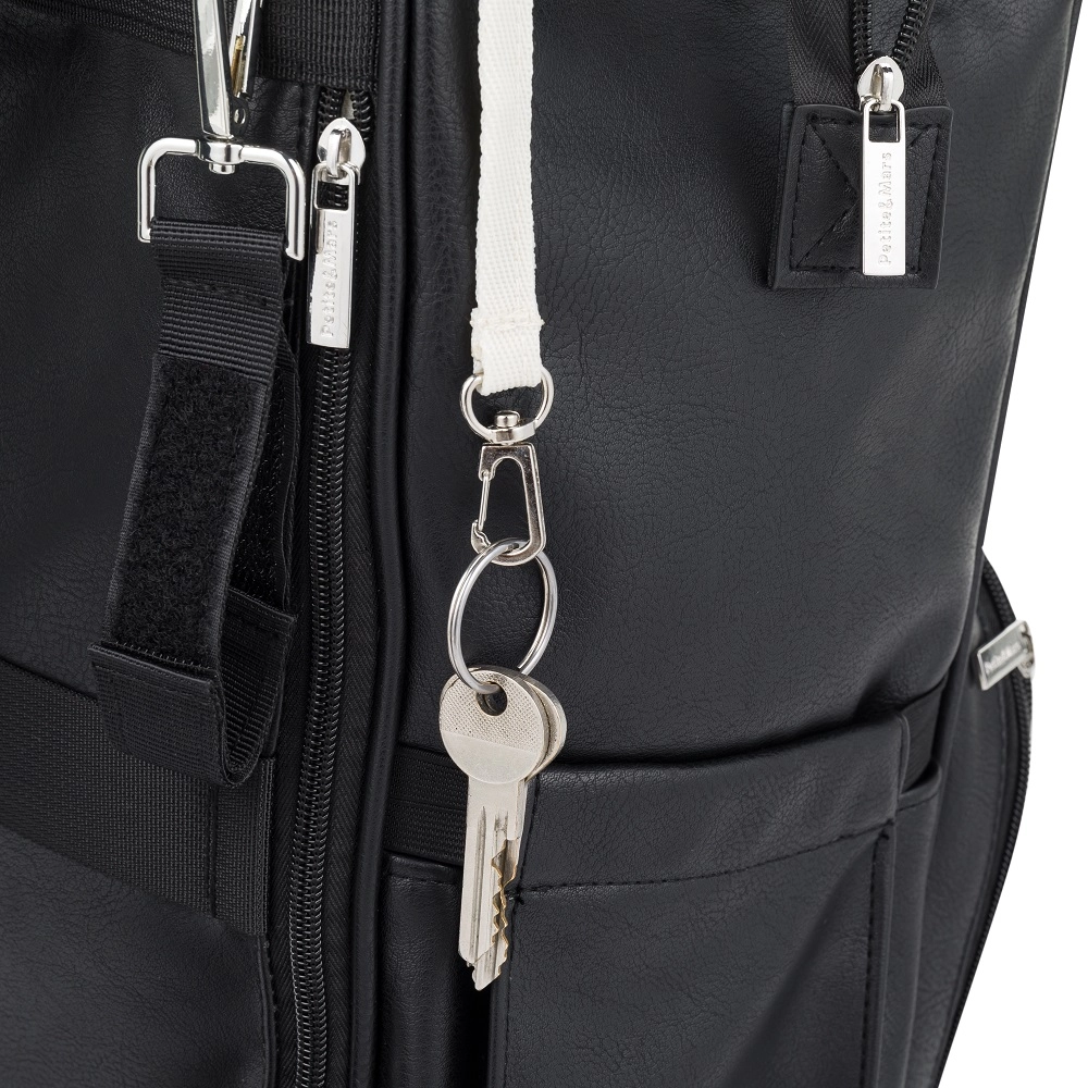 Die durchdachte Ausstattung umfasst 12 funktionale Taschen einschließlich isolierter Fächer für Flaschen, wasserdichte Fächer für nasse Kleidung, spezielle Fächer für Tablet/Laptop sowie eine praktische Öffnung für Feuchttücher. Ein Schlüsselband, eine erweiterbare Außentasche für Flaschen und ein Gepäckband für den Koffer beim Reisen fehlen ebenfalls nicht.