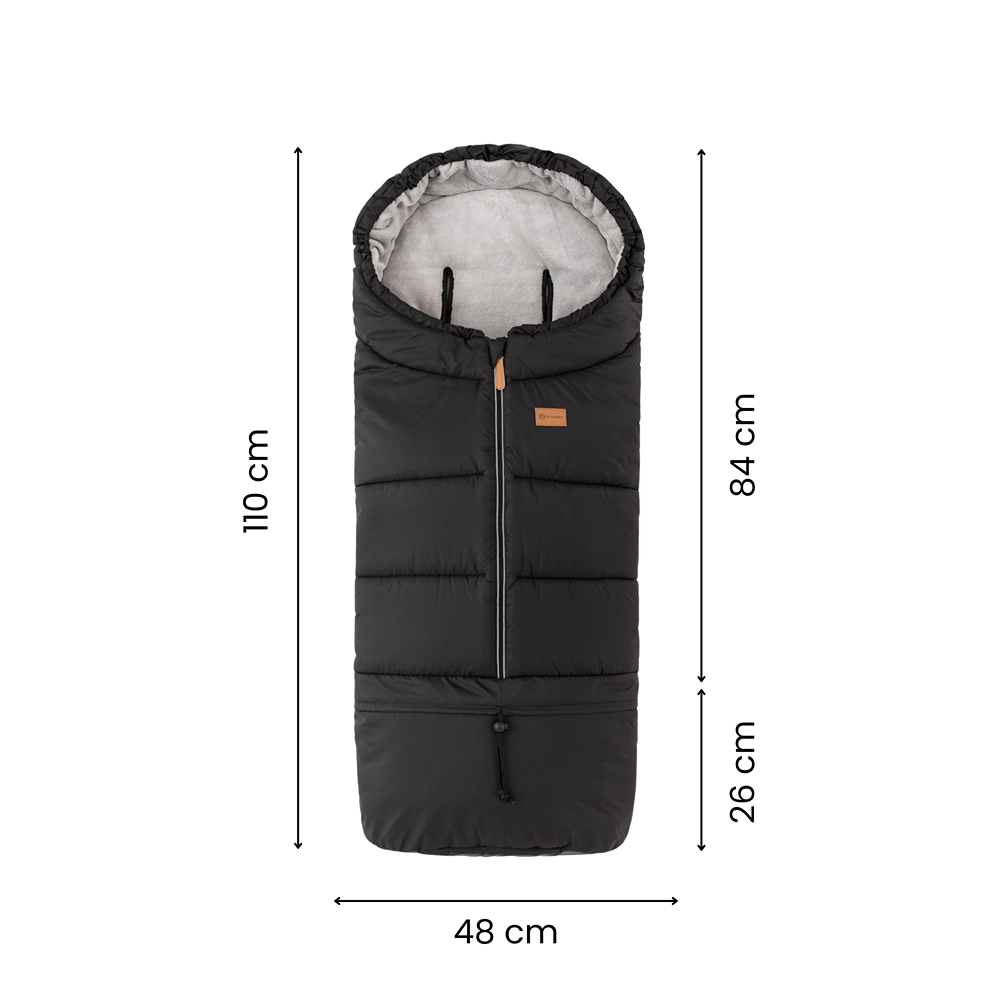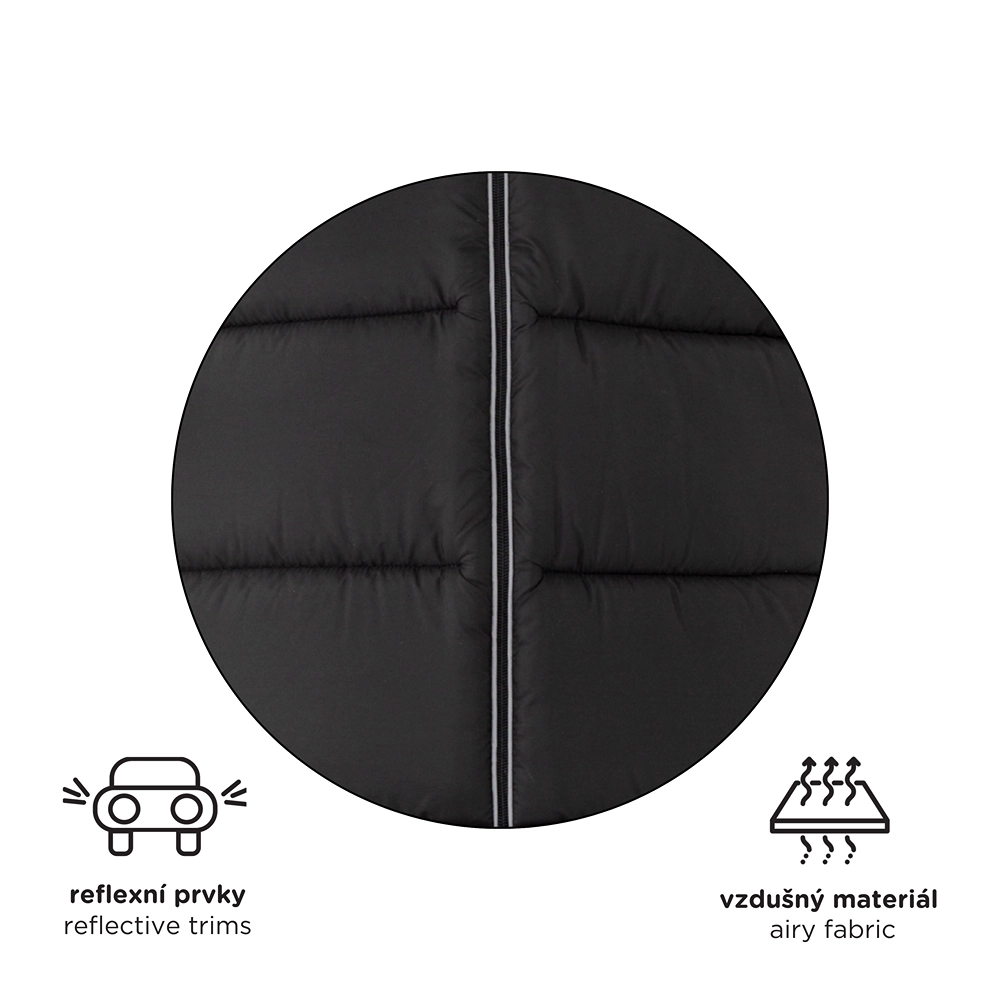 Durchdachte vertikale Öffnungen für Sicherheitsgurte sorgen für eine breite Kompatibilität mit den meisten Kinderwagenmarken. Die rutschhemmende Rückseite (ABS) verhindert ein Verrutschen im Sitz und reflektierende Elemente erhöhen die Sichtbarkeit bei schlechten Lichtverhältnissen. Der mittige Reißverschluss ermöglicht schnellen Zugang zum Kind und der untere, leicht abwischbare Bereich ist auch für Schuhe praktisch.
