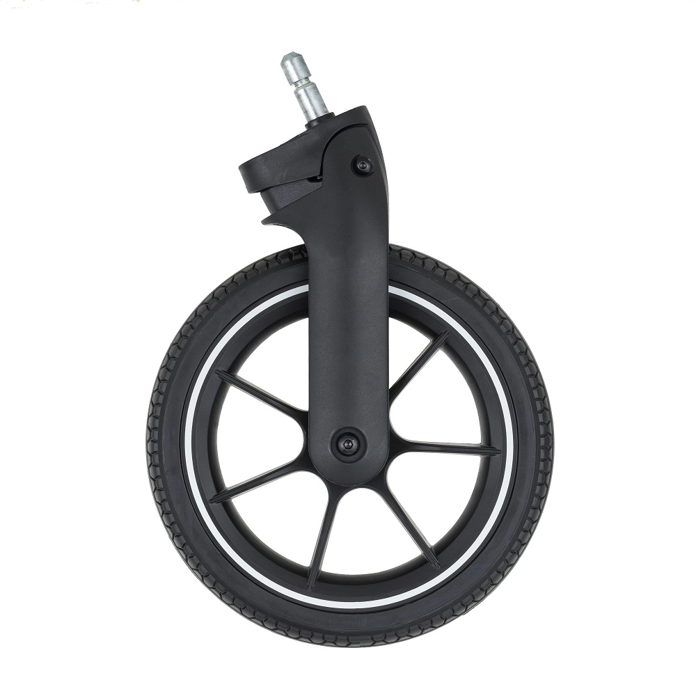 Große Gummiräder mit Federung und arretierbaren Vorderrädern meistern Stadt und Parkwege. Der stabile Rahmen sorgt für eine ruhige Fahrt und sicheres Handling.