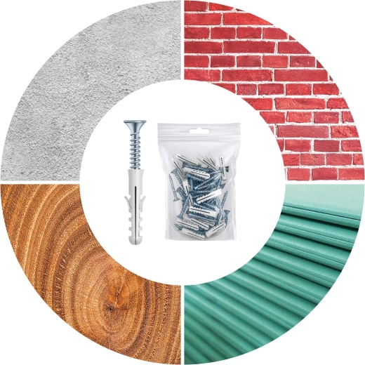 Im Lieferumfang sind Universaldübel enthalten, geeignet für Beton, Ziegel, Holz und Blech. Schnelle Befestigung und stabile Fixierung der Paneele.