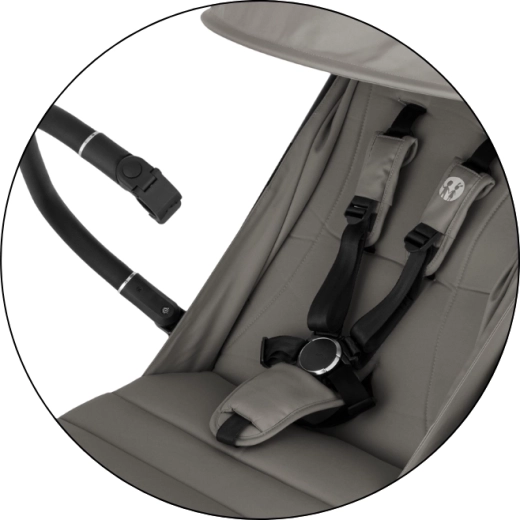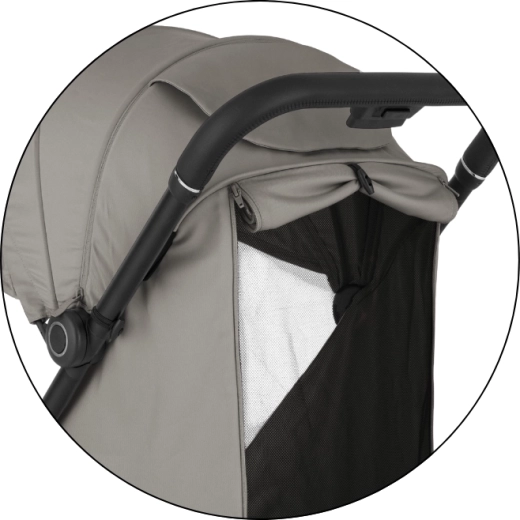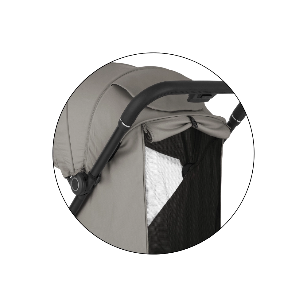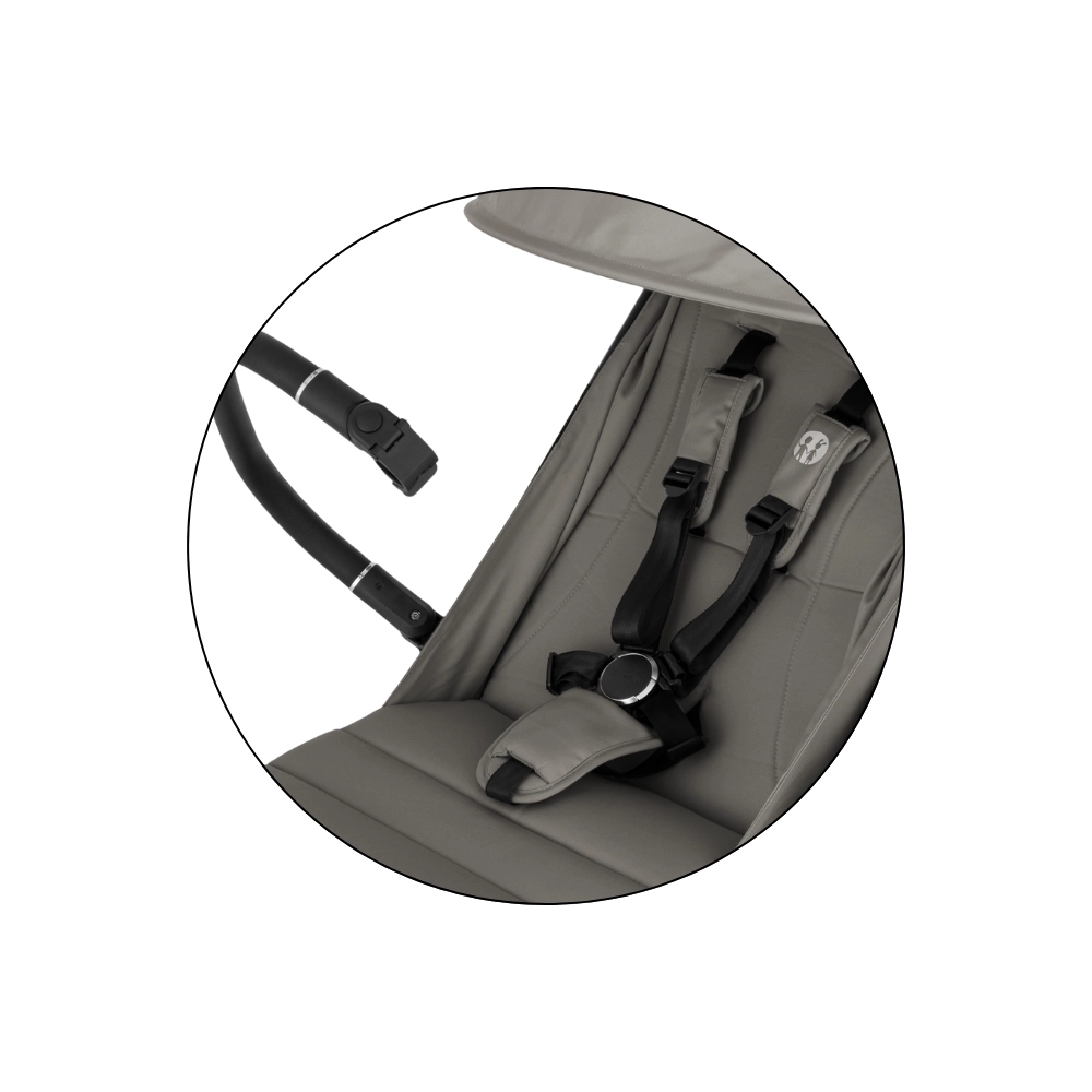 Für längere Ausflüge bietet er Ihrem Kind hohen Komfort: Der geräumige Sitz (Breite 33–37 cm) und die belüftete Rückenlehne mit Einstellung bis zur vollständigen Flachlage unterstützen erholsames Ausruhen. Das erweiterbare Verdeck mit UPF50+ und einem leisen Magnet-Sichtfenster schützt und ermöglicht diskrete Aufsicht. Ein 5-Punkt-Gurt mit Magnetverschluss sorgt für schnelles und sicheres Anschnallen.