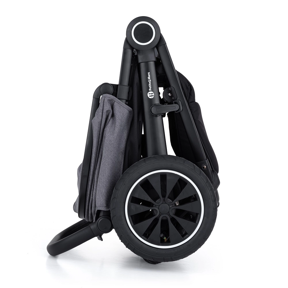Mit einer Hand zu einer kompakten Form zusammenklappbar – für leichtes Tragen und Verstauen im Autokofferraum oder zuhause. Ideal für aktive Eltern.