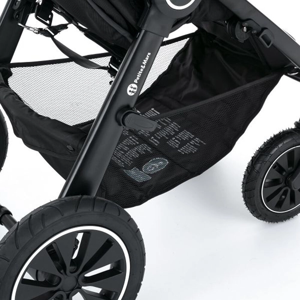 Der PETITE&MARS Street+ Air Black Limited ist ein durchdachter Kinderwagen für Kinder von 6 Monaten bis 22 kg, entwickelt für den Komfort von Kind und Eltern. Die leichte, aber stabile Konstruktion dämpft Stöße, und die Luftreifen erhöhen Stabilität und Durchkommen in Stadt und Gelände. Das extra große Verdeck mit Fenster und SPF 50 schützt vor Sonne und Wind, während die lange Liegefläche und die hohe Rückenlehne auf jeder Fahrt Komfort bieten.