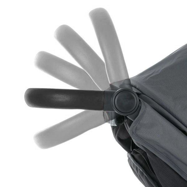 Höhenverstellbarer Schiebegriff, abnehmbarer Bügel aus Kunstleder und Rücken- sowie Beinverstellung fast bis zur Liegeposition für einen erholsamen Schlaf.