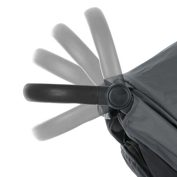Höhenverstellbarer Schiebegriff aus Eco-Leder, hohe Rückenlehne und Verstellung fast bis zur Liegeposition für maximalen Komfort.