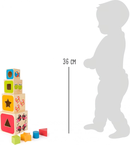 Das Einsetzen der Formen und das Bauen von Türmen stärkt den Griff, die Hand-Auge-Koordination und die Geduld. Kinder lernen Genauigkeit und räumliche Orientierung.
