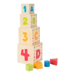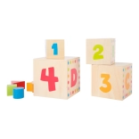 Die Holz-Steckwürfel ABC small foot sind das ideale didaktische Spielzeug für erste Lernerfahrungen. Kinder setzen die passenden Formen in die entsprechenden Öffnungen, stapeln die Würfel aufeinander und lernen anhand der Aufdrucke Buchstaben und Zahlen kennen. Spielerisch trainieren sie Form- und Farberkennung, Zählen sowie das Alphabet.