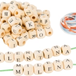 Entdecken Sie ein unterhaltsames Set für kleine und große Kreative: 300 Holzwürfel mit Buchstaben zur Herstellung origineller Armbänder, Halsketten und Namensschilder. Das Set fördert die Kreativität, entwickelt die Feinmotorik und hilft beim Erlernen der Buchstaben und bei den ersten Wörtern.