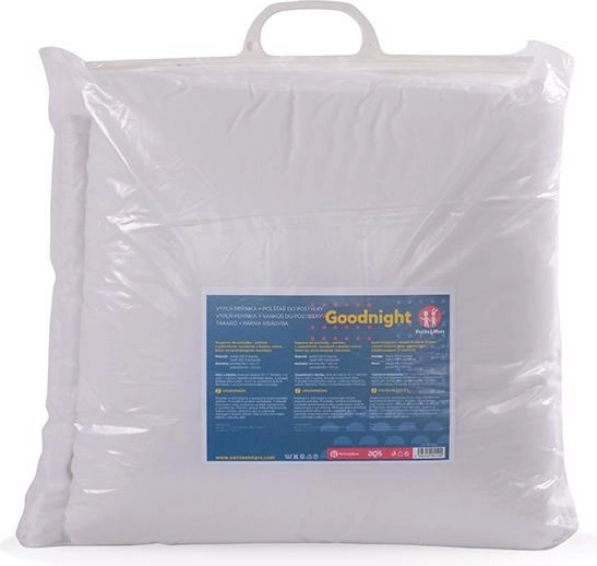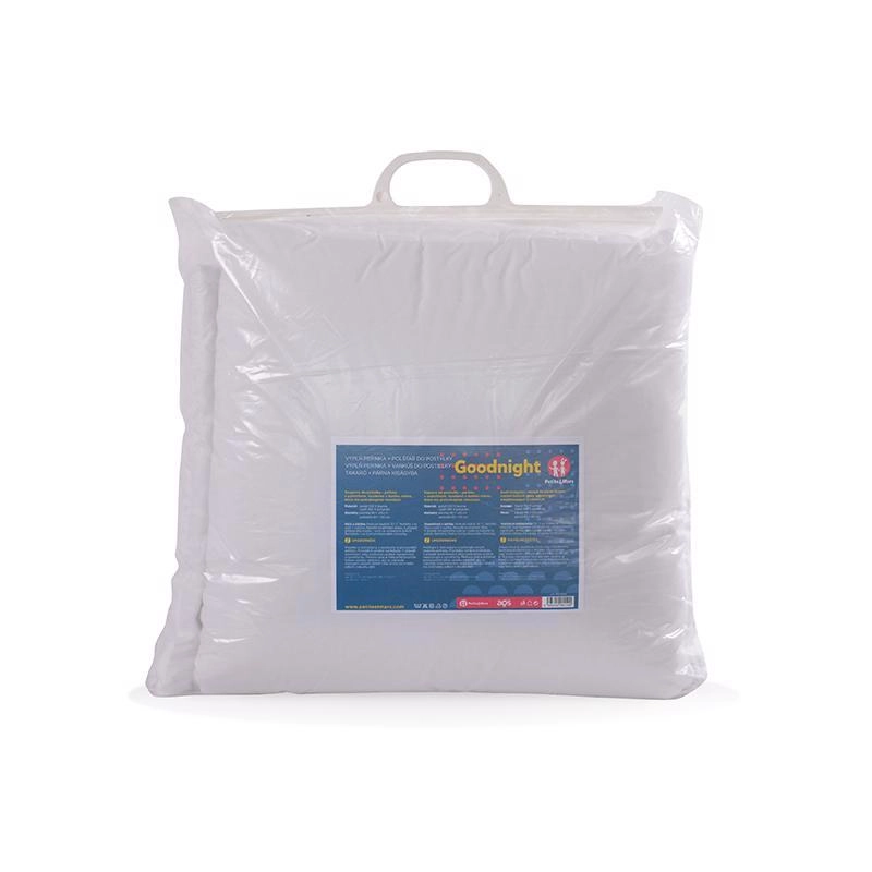 Das Füllset Goodnight von Petite&Mars sorgt das ganze Jahr über für ruhigen Schlaf. Decke und Kissen sind leicht, besonders weich und formstabil. Der Baumwollbezug ist angenehm auf der Haut, während die Hohlfaser im Inneren Atmungsaktivität, pflegeleichte Handhabung und antiallergische Eigenschaften gewährleistet.