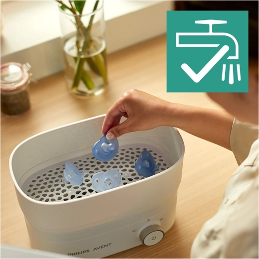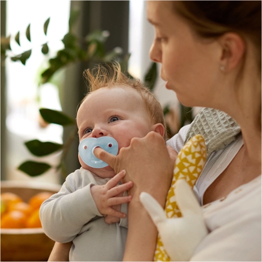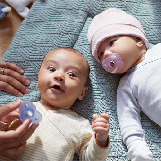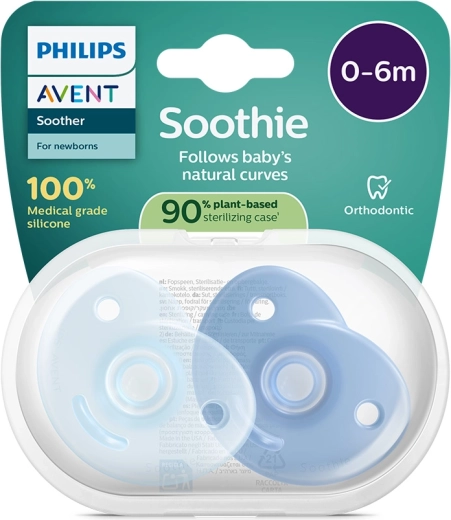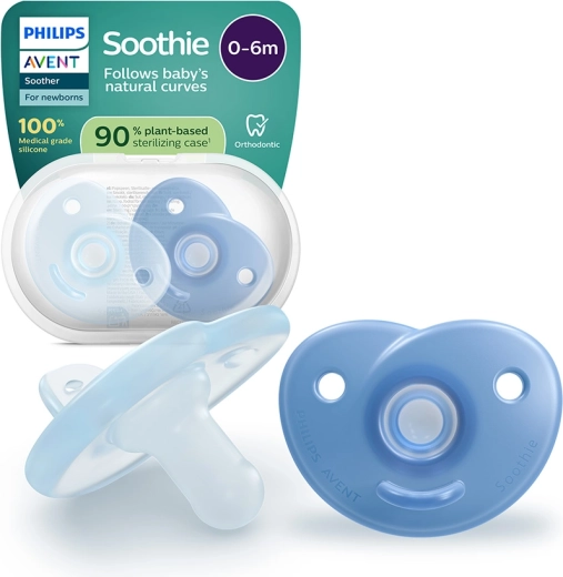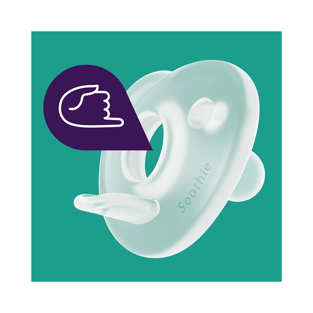 Der Philips Avent Soothie Schnuller wurde in Zusammenarbeit mit medizinischen Fachkräften entwickelt und wird in Krankenhäusern in den USA verteilt. Dank des einteiligen Silikonkörpers ist er leicht zu reinigen, speichert kein Wasser und bietet auch den Kleinsten maximalen Komfort. Eine einzigartige Fingeröffnung ermöglicht es Eltern, das Saugen sanft zu unterstützen und so die Bindung zu stärken.