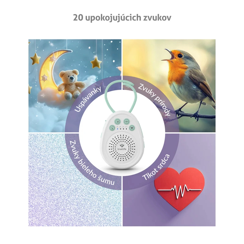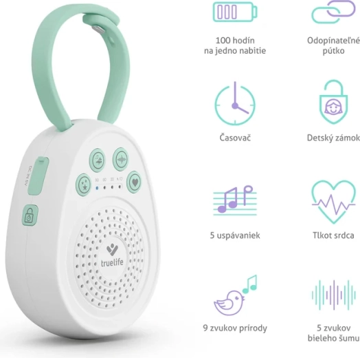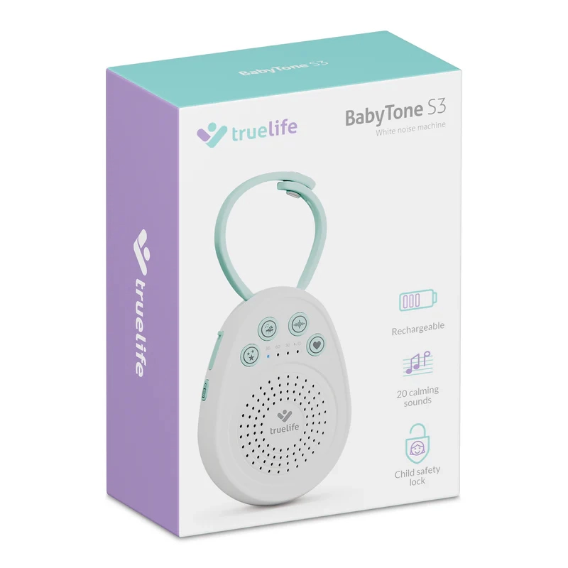 Der TrueLife BabyTone S3 ist ein kompakter, tragbarer Einschlaf‑Modul, der Kindern hilft, schneller einzuschlafen und länger zu schlafen. Über den hochwertigen Lautsprecher spielt er in Schleife bis zu 20 Klänge ab – von sanften Melodien über Naturgeräusche bis hin zu beliebtem weißem Rauschen und authentischem Herzschlag, der ein Geborgenheitsgefühl wie aus der vorgeburtlichen Zeit vermittelt. Dank der Speicherfunktion für den letzten Klang wird nach dem Einschalten automatisch das wiedergegeben, was am besten wirkt.