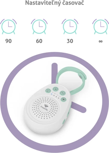 Mit einer Laufzeit von bis zu 100 Stunden pro Ladung und dem Laden über USB‑C ist der BabyTone S3 für den täglichen Einsatz zu Hause und unterwegs bereit. Das abnehmbare Band ermöglicht das einfache Aufhängen am Kinderbett, Kinderwagen oder Autositz und der Timer 30/60/90 Minuten sorgt für das automatische Ausschalten. Die Kindersicherung schützt die Einstellungen vor geschickten Händchen und die Materialien ohne BPA gewährleisten eine sichere Nutzung.