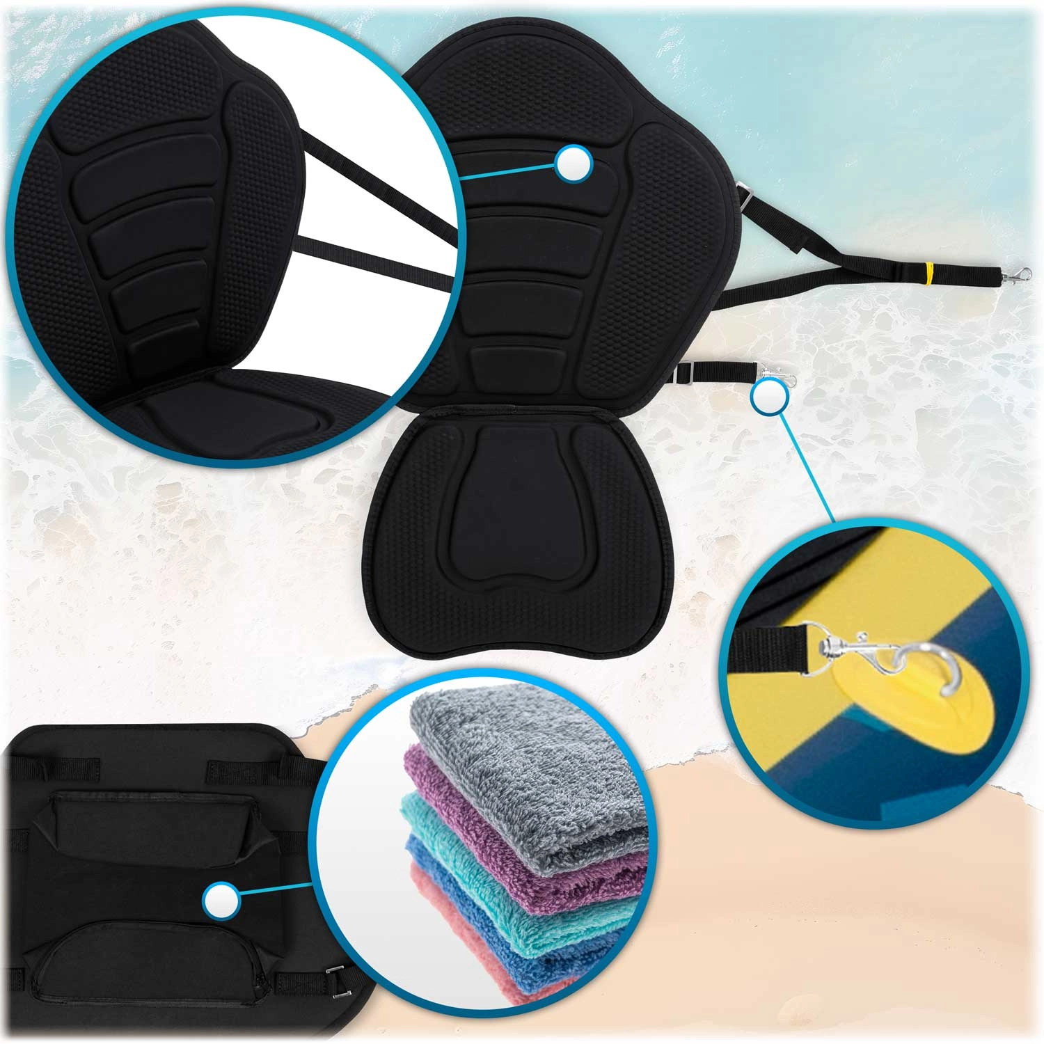 Genießen Sie längere und bequemere Fahrten auf dem Paddleboard dank des ergonomischen Sitzes mit weicher Schaumfüllung. Die geformte Rückenlehne verbessert die Körperhaltung und hilft Einsteigern beim Gleichgewicht, während rutschfeste Flächen bei jedem Paddelschlag zusätzliche Sicherheit geben.