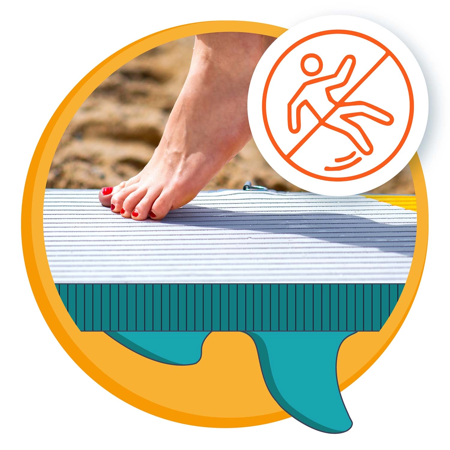 Die breite Plattform mit 15 cm Stärke, die rutschfeste EVA-Deckschicht und drei Richtungsfinnen sorgen für ausgezeichnete Balance und Kontrolle – ideal für ruhiges Wasser und kleine Wellen.