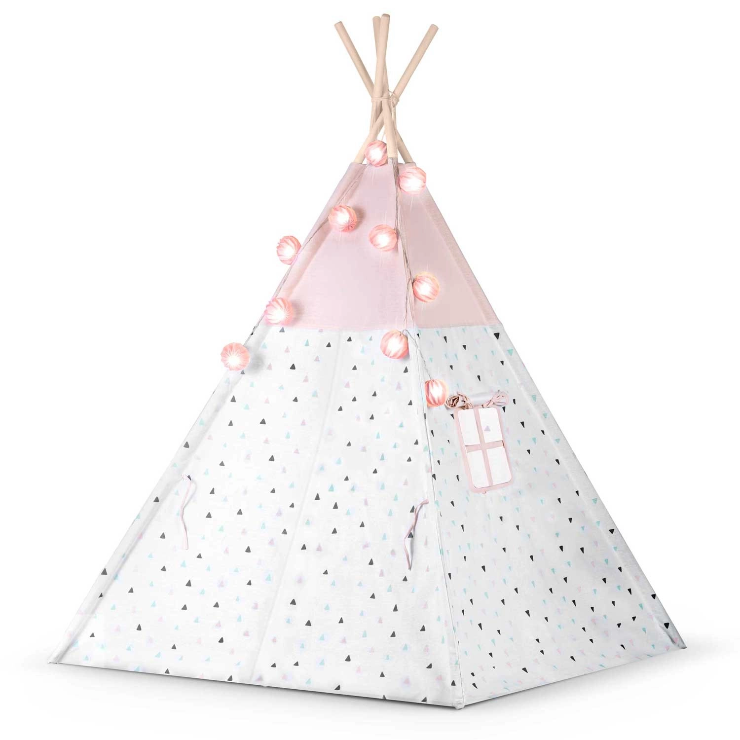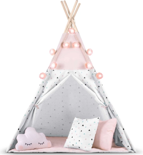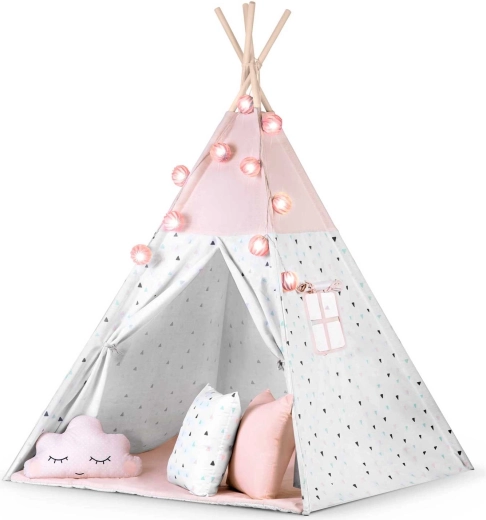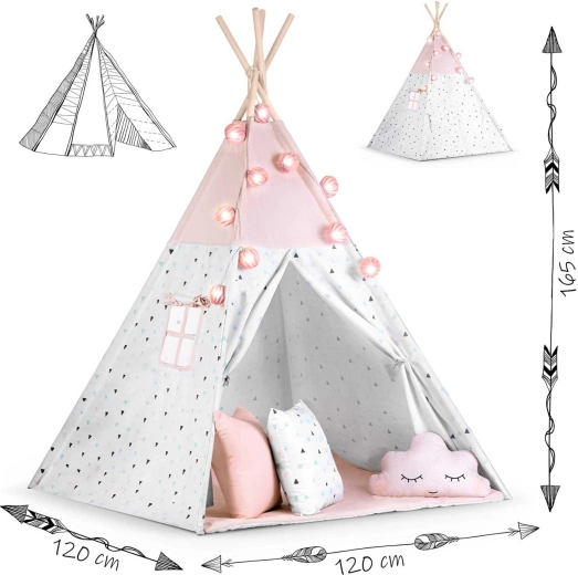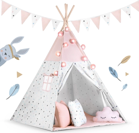 Das Kinder-Tipi NUKIDO in zarten Rosatönen ist ein Highlight im Kinderzimmer. Die atmungsaktive Premium-Baumwolle (175 g/m²) ist weich, langlebig und angenehm im Griff, während die Holzstangen aus Fichte Stabilität und eine lange Lebensdauer gewährleisten. Dank des schnellen Aufbaus und der leichten Konstruktion lässt sich das Tipi mühelos vom Zimmer auf die Terrasse oder in den Garten tragen.
