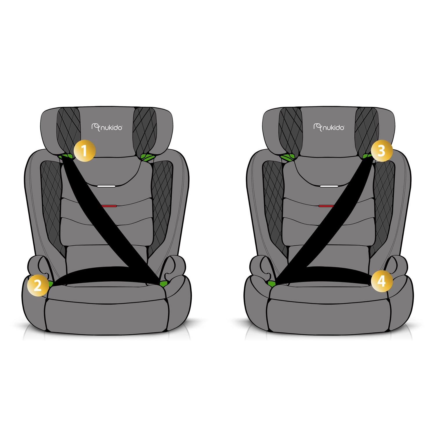 Der Kindersitz Nukido Louis wächst mit Ihrem Kind von ca. 4 bis 12 Jahren. Dank ISOFIX ist die Montage schnell und stets korrekt, während SIP (Side Impact Protection) den Schutz von Kopf, Nacken und Wirbelsäule bei einem Seitenaufprall erhöht. 12 Einstellstufen der Kopfstütze und eine 2‑stufige Neigungsverstellung ermöglichen komfortables Reisen in verschiedenen Altersphasen.