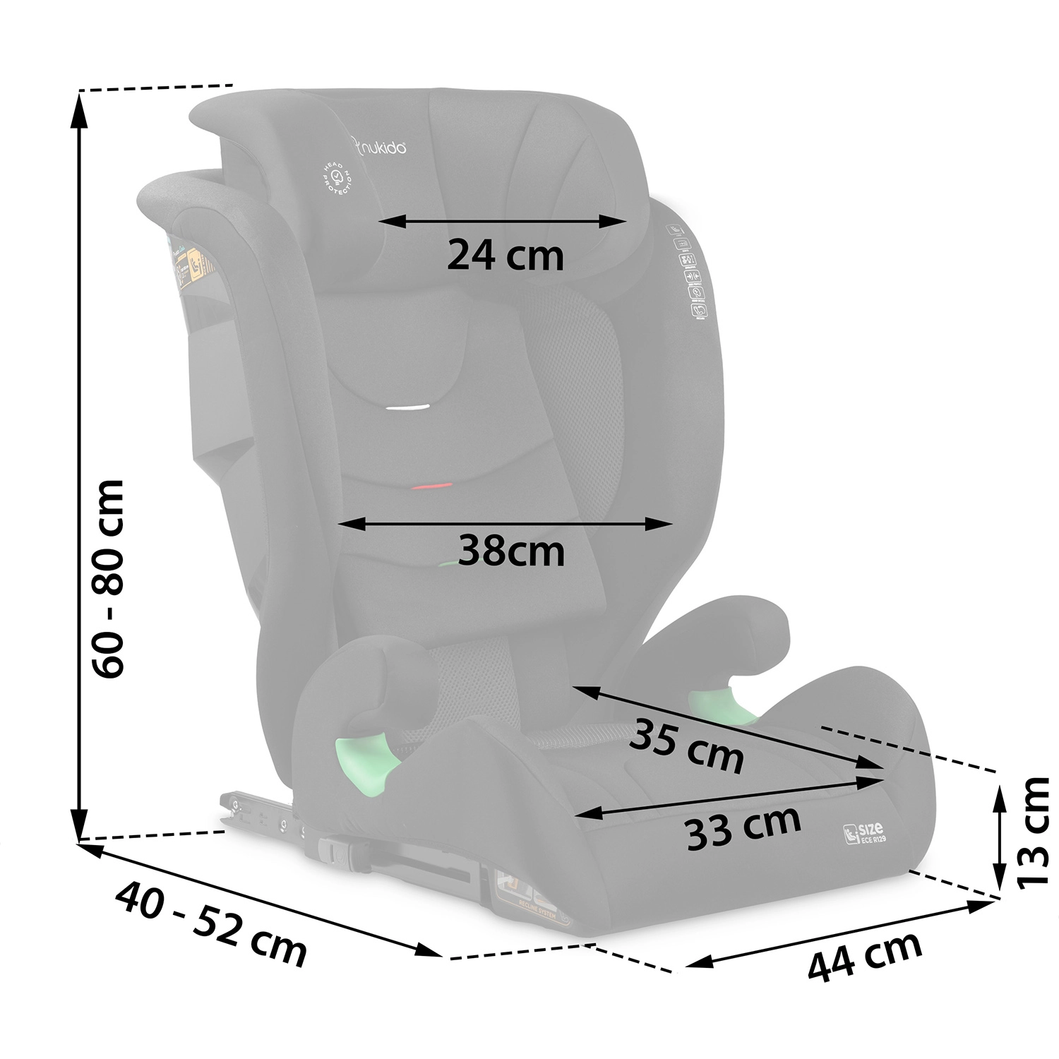 Der Autositz NUKIDO Louis Soft wächst mit Ihrem Kind etwa von 4 bis 12 Jahren mit. Dank des Größenbereichs von 100–150 cm (i-Size) und 12 Stufen der Kopfstützenverstellung sind stets die korrekte Gurtposition und eine bequeme Kopfabstützung gewährleistet. Das ISOFIX-System sorgt für eine feste Verbindung mit der Fahrzeugstruktur, während der fortschrittliche SIP – Side Impact Protection den Schutz bei Seitenaufprall erhöht.