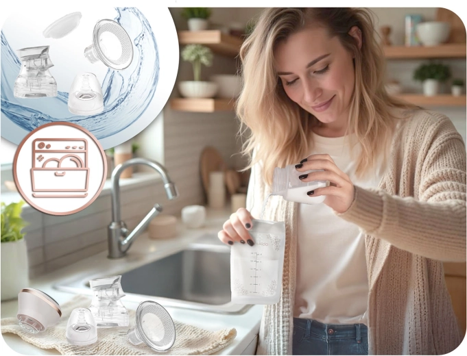 Die integrierte Li‑Ion-Batterie bietet bis zu 6 Stunden Nutzung. Der leise Lauf ermöglicht diskretes Abpumpen zu Hause, bei der Arbeit und unterwegs.