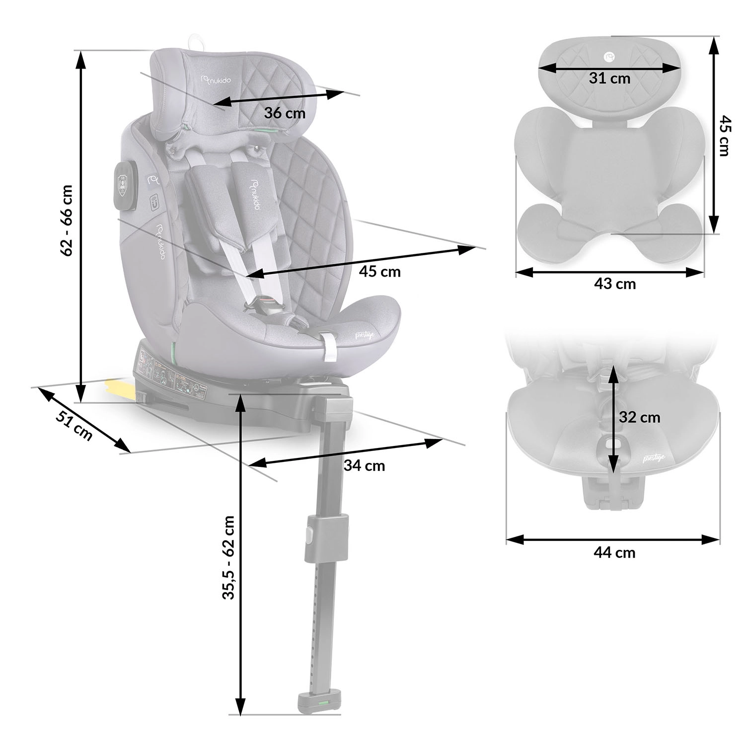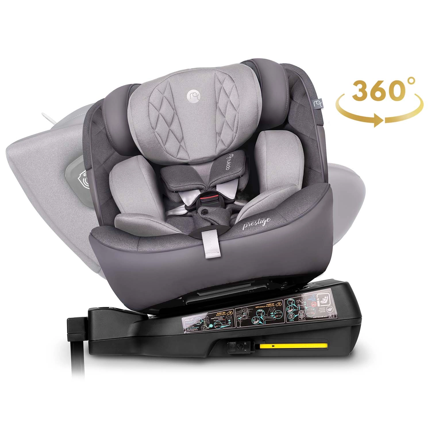 Der Kindersitz Nukido Prestige Line kombiniert erstklassige Sicherheitsmerkmale mit maximalem Komfort und Alltagstauglichkeit für tägliche Fahrten. Dank der 360°-Drehbasis schnallen Sie Ihr Kind bequem von der Seite an, während SIP – Side Impact Protection mit verstärkten Seitenteilen Kopf, Nacken und Wirbelsäule bei einem Seitenaufprall schützt. Die Konstruktion entspricht der Norm ECE R129 (i-Size) und wächst mit dem Kind von Geburt bis etwa 12 Jahre mit.