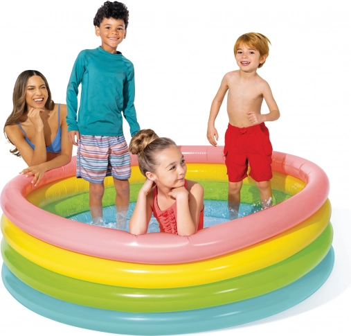Der aufblasbare INTEX-Pool mit einem Durchmesser von 168 cm und einer Höhe von 46 cm ist die perfekte Wahl für Familien, die eine schnelle Abkühlung und sicheres Wasserspiel für Kinder suchen. Dank der vier farbigen Ringe ist das Becken stabil, zugleich leicht und einfach zu transportieren.
