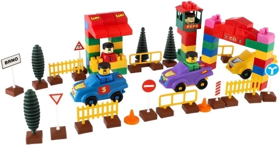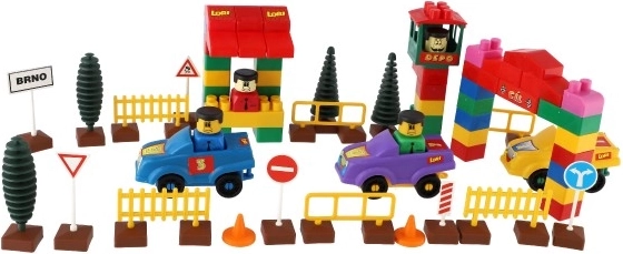 Der Bausatz enthält realistische Elemente, die eine Verkehrsumgebung für das Spiel stimulieren, wie Autos, Bäume und Verkehrsschilder.
