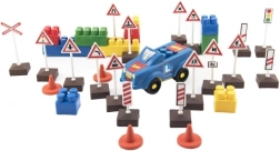Bausteinset Fahrschule bietet Spaß und Bildung in einem! Es enthält 16 Stück Verkehrsschilder, 2 Kegel und ein Auto, ideal für die Entwicklung von Kinderfähigkeiten.