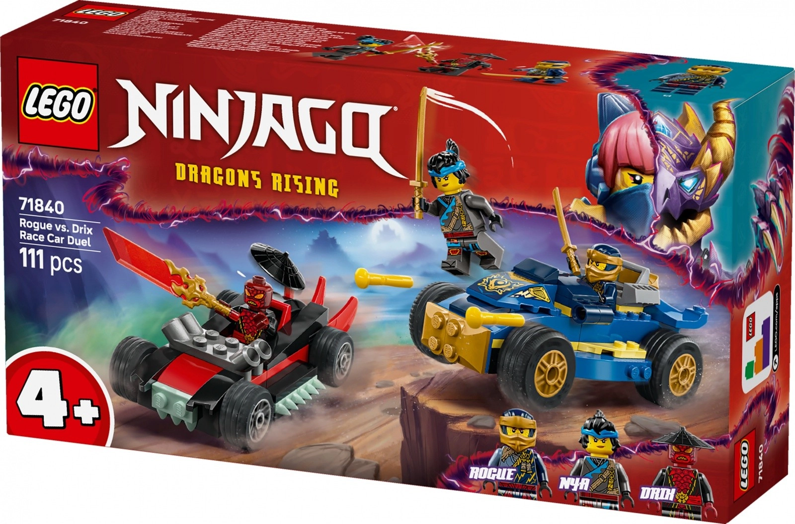 Enthalten sind 3 beliebte Minifiguren: Rogue und Nya mit goldenen Katanas sowie der Bösewicht Drix mit einer transparenten Enthüllungsklinge. Mit 111 Teilen ist es ein ideales Geschenk für kleine Baumeister, das Kreativität, Feinmotorik und Geschichtenerzählen fördert.
