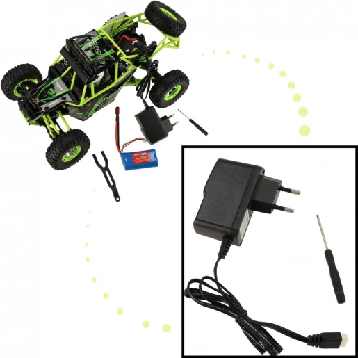 - Modell WLToys 12428, RC-Sender, Akku 7,4 V 1500 mAh, Ladegerät, Schraubendreher, Schlüssel, Anleitung