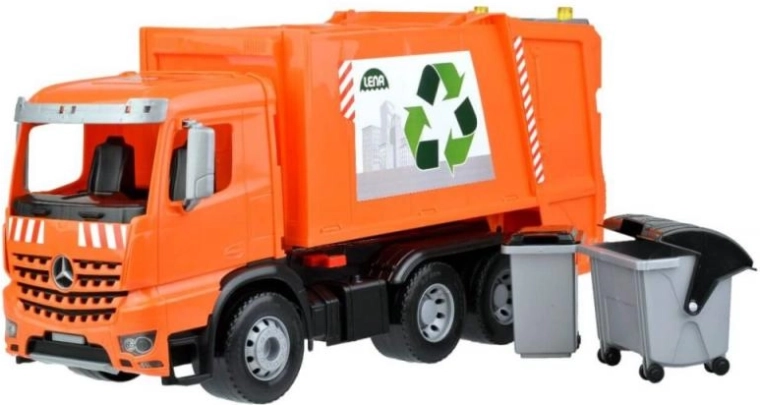 Der orangefarbene Müllwagen Mercedes‑Benz Arocs der Marke Lena bietet Kindern ein realistisches Spiel rund um Mülltrennung. Er verfügt über stabile Metallachsen (6 mm), robusten Kunststoff, eine Sicherung gegen unbeabsichtigtes Kippen und zwei Mülltonnen für noch mehr Spielspaß und Lernen.