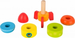 Das Stapeln der Ringe auf die Stange unterstützt die Präzision der Bewegungen, die Konzentration sowie die Hand-Auge-Koordination bei Kindern ab 1 Jahr.