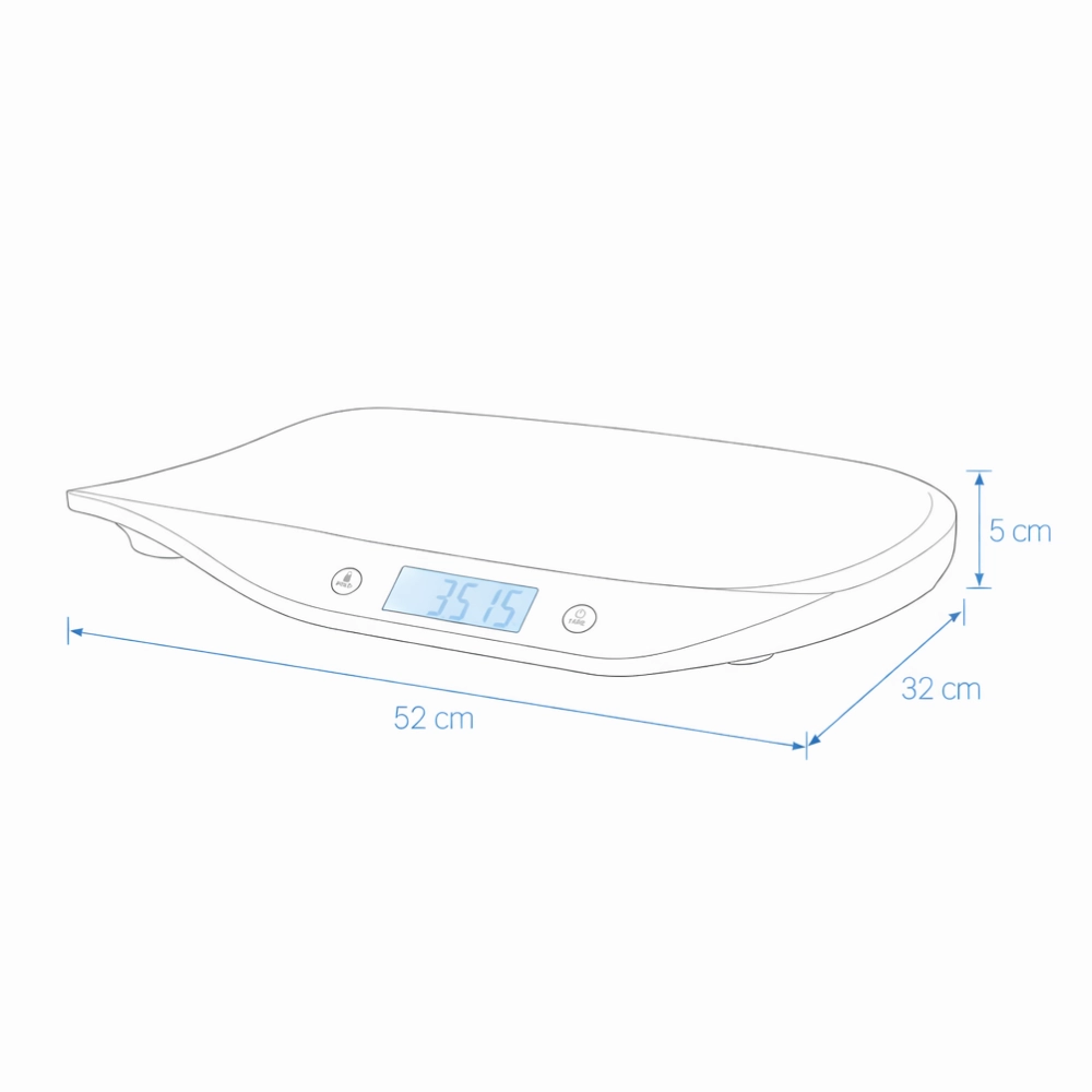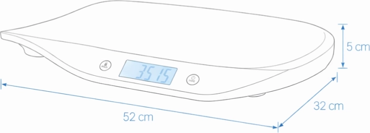 Die ergonomische, breite und sanft gekrümmte Fläche schützt das Baby vor dem Abrutschen und erhöht den Komfort beim Wiegen. Eine einfache und intuitive Bedienung, die automatische Abschaltung und die Stromversorgung mit zwei AAA-Batterien machen diese Waage zur idealen Wahl für den täglichen Einsatz zu Hause.