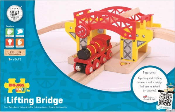 Genießen Sie großartigen Spaß mit der Holzklappbrücke, die jeden kleinen Bauingenieur faszinieren wird. Die Klappbrücke und vorbeifahrende Züge erfreuen die kindliche Vorstellungskraft.