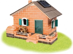 Der Baukasten enthält echte Ziegelsteine und Maismörtel, die die Feinmotorik und Kreativität fördern.