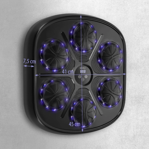 Dank Bluetooth und integriertem Lautsprecher können Sie während des Trainings Ihre Lieblingsmusik abspielen. Akkubetrieb und USB‑C‑Ladung erleichtern die tägliche Nutzung. Die Montage ist im Handumdrehen erledigt – das Ziel wird mit Klettbändern und Aufklebern ohne Bohren befestigt und ist somit ideal für Wohnungen und kleinere Räume.