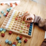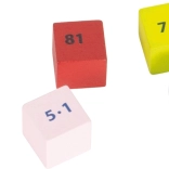Bunte Holz-Würfel mit Aufgaben motivieren Kinder, das Einmaleins täglich zu entdecken und zu wiederholen.