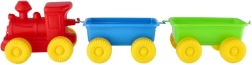 Bunter Plastikzug bietet stundenlangen Spielspaß für Kinder ab 18 Monaten. Sein fröhliches und freundliches Design regt die kindliche Fantasie an und hilft, die Feinmotorik zu entwickeln. Die Waggons lassen sich leicht an- und abkoppeln.