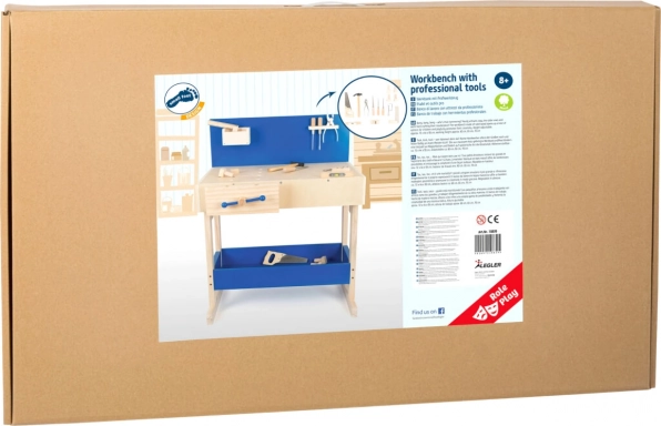 Die Holzwerkbank bietet Kindern die Möglichkeit, echte Arbeiten mit Werkzeug zu imitieren und dabei ihre Feinmotorik und Vorstellungskraft zu entwickeln. Die Werkbank ist mit verschiedenen Werkzeugen wie einer Säge und einem Hammer ausgestattet.
